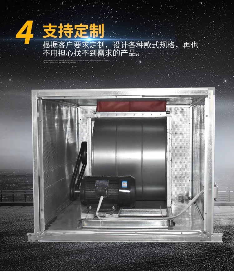 4、HTFC系列消防(通風(fēng))兩用低噪聲模式離心風(fēng)機分為A型 和B型兩種類型,A型電機裝在箱體外,用于消防排煙;B型電機裝在箱體內(nèi),用于通風(fēng)換氣。