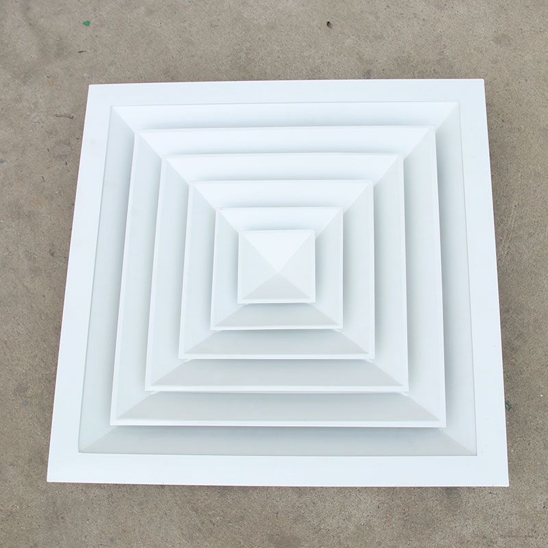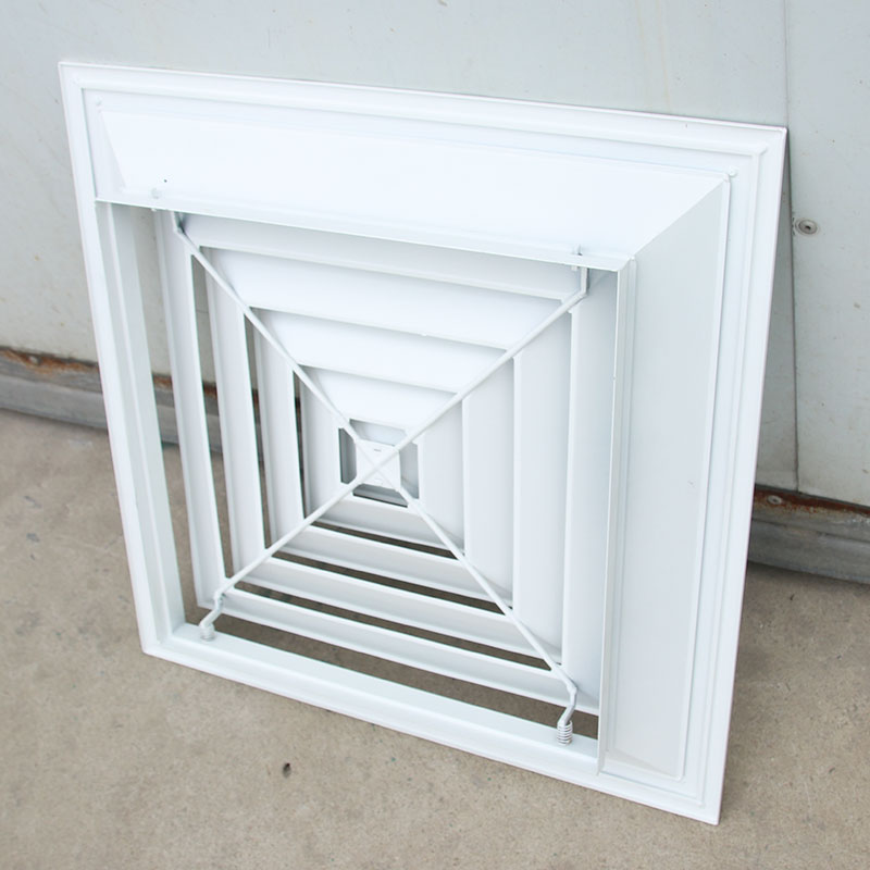 方型散流器使用該類型散流器時(shí)要與調(diào)節(jié)閥配合使用,才能在系統(tǒng)中得到理想的氣流分布。此風(fēng)口的葉片角度為固定式,不能隨意調(diào)節(jié),整個(gè)葉片與邊框采用分離結(jié)構(gòu)。