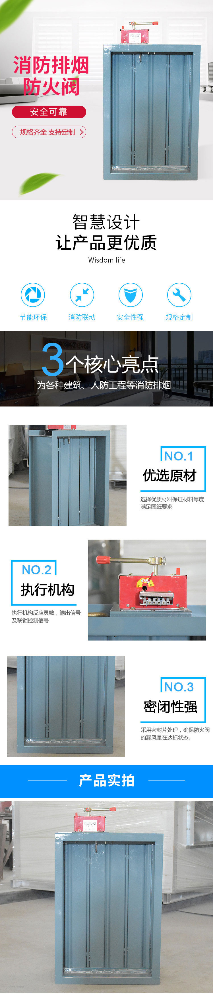 防火閥是一種常閉型閥門,由控制中心通24V直流電開啟或手動開啟,在280℃時自動關閉,復位必須手動。它的作用是:當煙氣溫度達到280℃時,人已基本疏散完畢,排煙已無實際意義,而煙氣中此時已帶火,閥門自動關閉,以避免火勢蔓延。系統(tǒng)的排煙風口也可以用常閉型的防火排煙口,取消支管上的排煙防火閥。火災時,該風口由控制中心通24V直流電開啟或手動開啟,當煙溫達到280℃時自動關閉,復位也必須手動。排煙風機房入口也應安裝排煙防火閥,以防火勢蔓延到風機房所在層。
