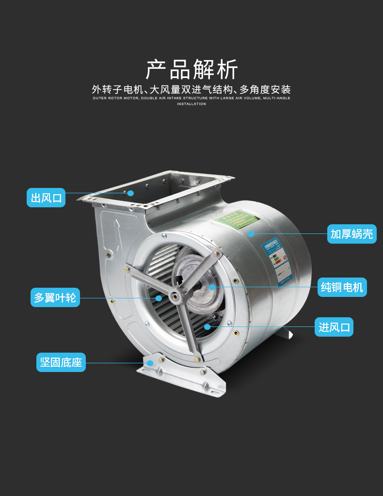 離心風(fēng)機(jī)是依靠輸入的機(jī)械能,提高氣體壓力并排送氣體的機(jī)械,它是一種從動的流體機(jī)械。離心風(fēng)機(jī)廣泛用于工廠、礦井、隧道、冷卻塔、車輛、船舶和建筑物的通風(fēng)、排塵和冷卻;鍋爐和工業(yè)爐窯的通風(fēng)和引風(fēng);空氣調(diào)節(jié)設(shè)備和家用電器設(shè)備中的冷卻和通風(fēng);谷物的烘干和選送;風(fēng)洞風(fēng)源和氣墊船的充氣和推進(jìn)等。
